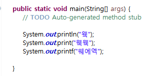 이 메소드는 이클립스에서 sysout이라 치고 ctrl + space bar 하면 바로 나온다.
